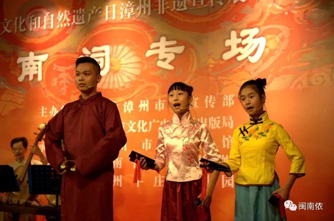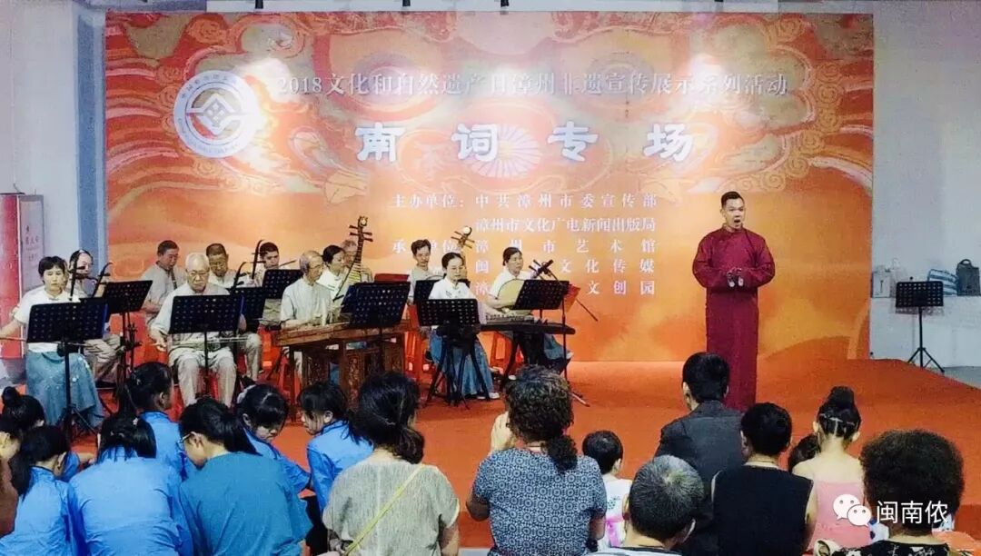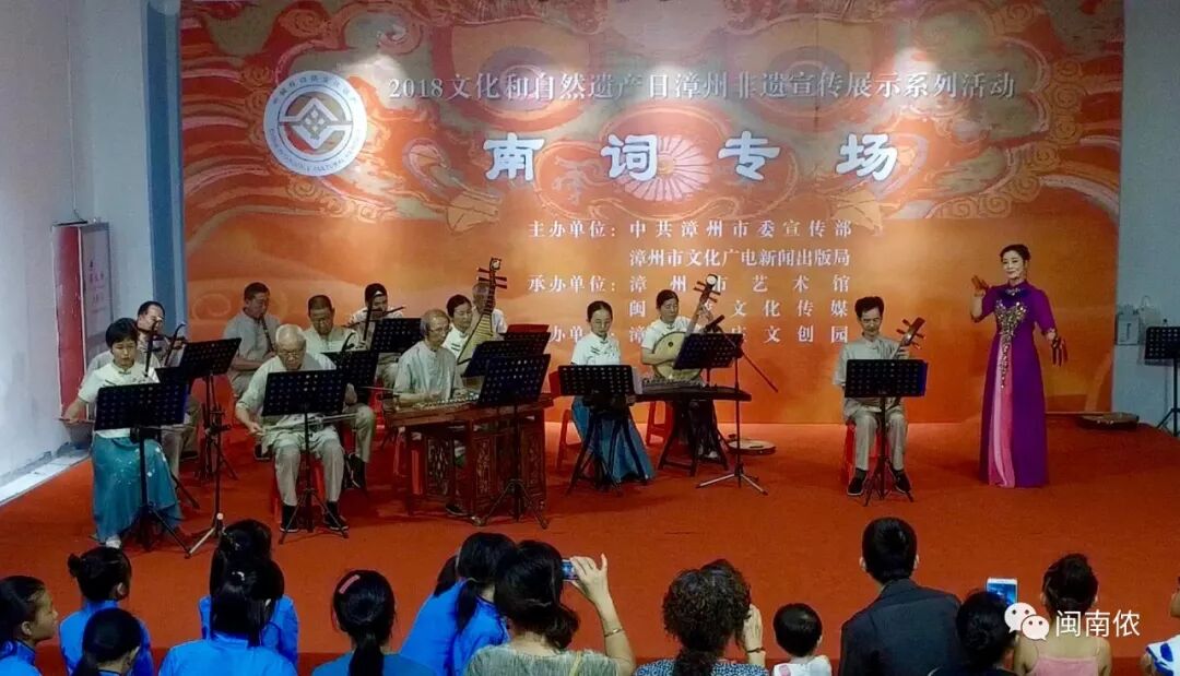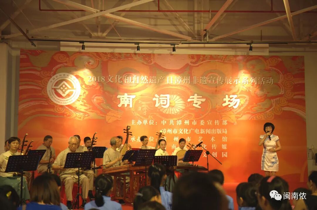 10号上午10点,“2018年文化和自然遗产日漳州非遗宣传展示系列活动——漳州南词专场”在漳州牛庄艺术馆二楼舞台举行,南词雅韵,余音绕梁。观众争相观赏,赞不绝口:“南词不愧是宫廷雅乐,典雅、委婉,今天终于一饱耳福了!” 南词专场 漳州南词古乐队演奏南词古曲《虞美人》 ▲青年舞蹈演员陈钰玲 优美的开场舞惊艳四座 ▲南词传承人李福平演唱的天官赐福小折《禄星》委婉余音绕梁 ▲优秀青年演员钟育贤演唱的秋江小折《潘必正沉思身叹》情深意切、绘声绘色 ▲国家一级演员杨珍珍演唱的《陈妙常思潘》优雅的唱腔令观众陶醉 ▲南词传承人郑炳裕与国家一级演员杨珍珍对唱秋江小折《陈姑赶船>生动诙谐,惟妙惟俏 ▲漳州南词古乐队演奏南词古曲《鹧鸪飞》 南词是唐朝宫廷音乐,总称“霓裳之曲”。漳州南词是清代道光年间(1845年)由漳州府总爷从江西代入漳州,故称赣州南词,在漫长的演变过程中,江西、江苏的南词已融入其他地方的音乐元素,像漳州南词如此原汁原味,极为罕见,亦极为珍贵。 漳州南词至今已有七代传人,约一百多年历史。 10号下午,文儒书院在现场举行了传承家风家训启动仪式,漳州市艺术馆馆长王燕成作为嘉宾莅临现场,可爱的小朋友们身着汉服表演节目,稚嫩的童音读着《百孝经》、闽南语《大学》......,悦耳动听。 1 2 2 3 外面阴雨绵绵,展区内的气氛简直不要太欢乐...... 互动专区 漳州市木偶剧团表演的漳州布袋木偶戏 佳庆——东美香脯糕制作技艺 竹蜻蜓,给我一个支点,我能站到天荒地老 徐竹初木偶头雕 徐昱老师木偶头展区脸谱教学 三太子领舞,嗨爆全场! 棉花画 爱米冰淇淋与糖画,小朋友永远的最爱 漳州木版年画 独脚鹤拳——捷元堂 龙裤国师传说展区 小朋友现场学习棉花画 小小少年学漳绣 诏安闽南木雕 诏安彩扎 诏安剪瓷雕 诏安黄金漆画 东山海柳雕 东山海船钉造技艺船模 东山金木雕 漳绣 龙人古琴 林墩竹编制作技艺 二宜楼——红曲酒酿造技艺 长泰健将酱油 长泰枋洋豆签 龙海浮宫土笋冻 龙海素三彩瓷 金素阁素食 感谢金素阁提供素卤面,与众结缘 闽南侬文创区 三太子也喜欢闽南侬的小狮子 还没有领略过漳州非遗风采的朋友看过来 2018年文化和自然遗产日宣传展示系列活动 时间:6月9日——6月16日10:00——17:30 地点:漳州牛庄文创园艺术馆二楼 摄影 | 葫芦小七 陈凯东 编辑 | 葫芦小七![]()