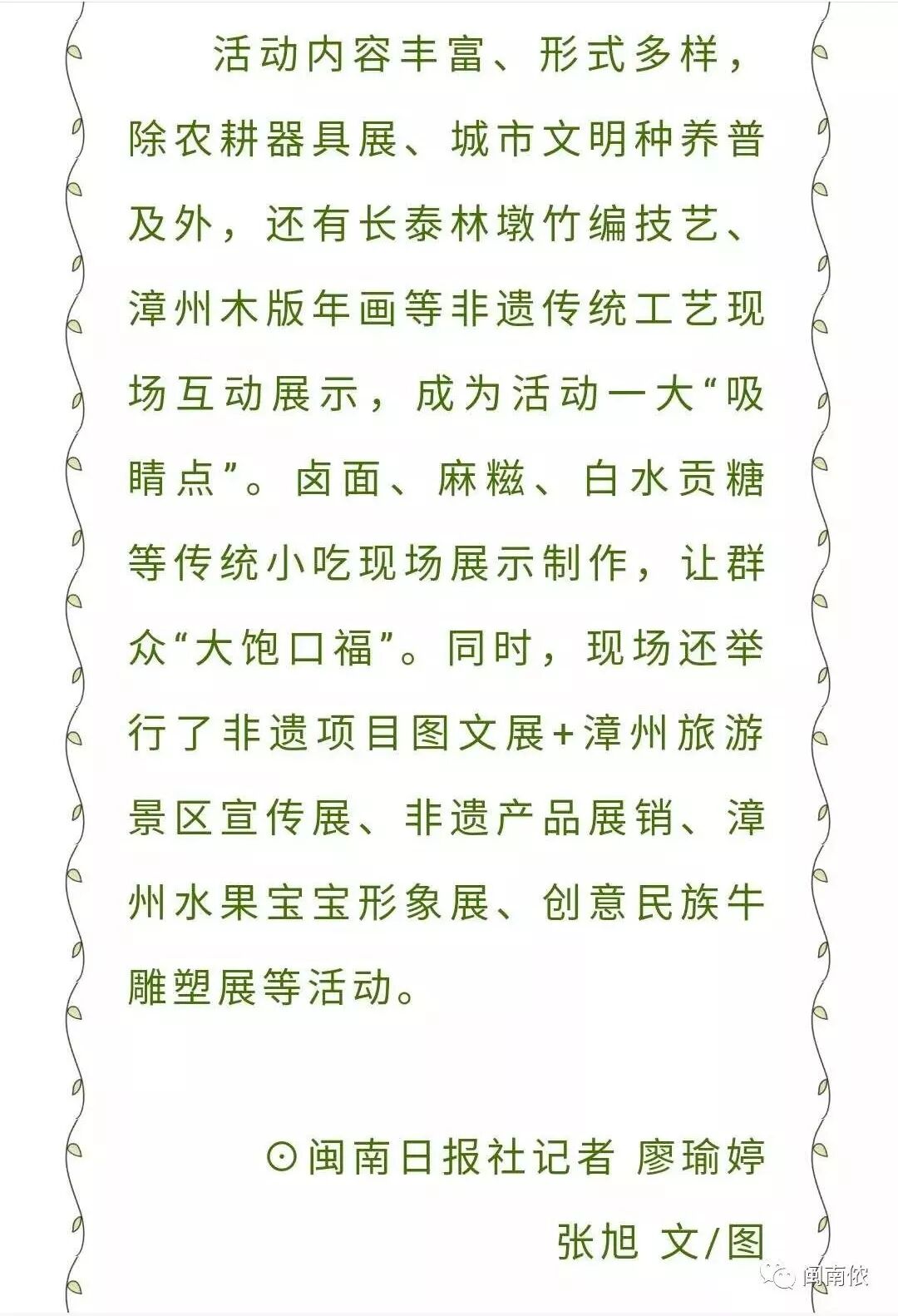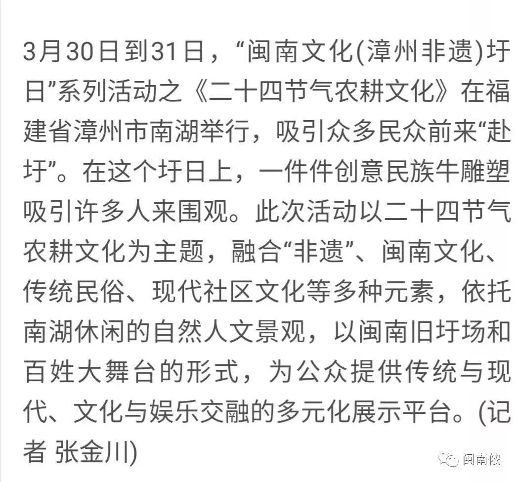 圩日活动,将在“闽南侬”公众号提前告知大家,想要了解更多新鲜资讯,记得关注“闽南侬”哦 圩日精彩瞬间: 部分图文源自网络,版权归原作者所有 新闻正文节选自中新网、光明网、漳州新闻网 编辑 | 葫芦小七 推荐阅读 Recommended Reading | 一直被低估的闽南 ----END---- 扫一扫,关注闽南侬二维码 有你想听的闽南故事